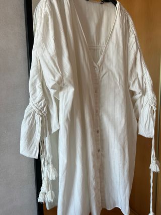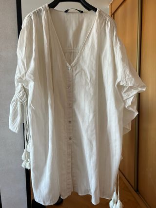 Prenda versátil que puede usarse como blusa o vestido. - Diseño con botones frontales. - Mangas largas. - Tejido ligero.