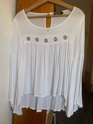 Blusa blanca de Zara con tachuelas. Talla XS. N perfecto estado.