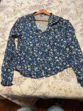 Preciosa blusa de la marca Cortefiel. Es de color blanco y tiene un estampado floral precioso..detalle en los puños muy original. - Manga larga. - Cuello redondo. - Detalle de pliegues en los puños.