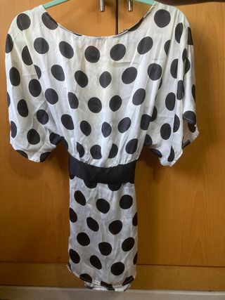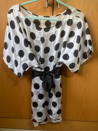 Blusa mujer. Lunares negros sobre fondo blanco. Con lazada