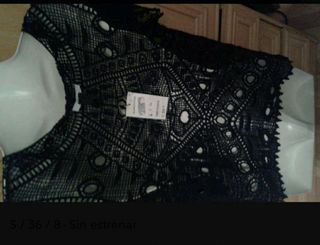 Tejido ligero y suave, con detalles de ribetes blancos. Abrocha detrás con botón. Pone talla XS pero da bastante más, se podría utilizar hasta una L. Comprobar medidas ⬇️ - Axila a axila: 47 cm - Hombros: 37 cm - Cintura: 48 cm - Cadera: 48 cm - Largo: 60 cm
