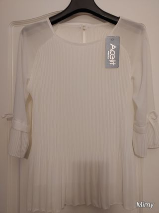 Sin estrenar. Talla S, con un pequeño botón en el cuello por la espalda. Mangas también plisada.