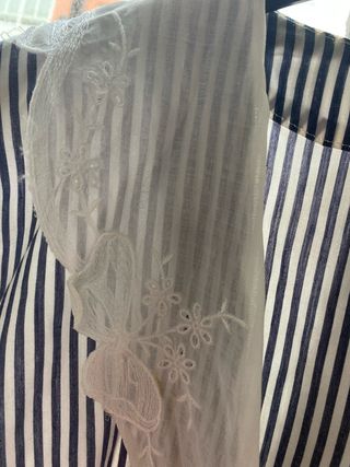 Blusa con volante y puntilla azul marino y blanca de Primark. En buen estado, puesta en pocas ocasiones. Talla 42( XL).