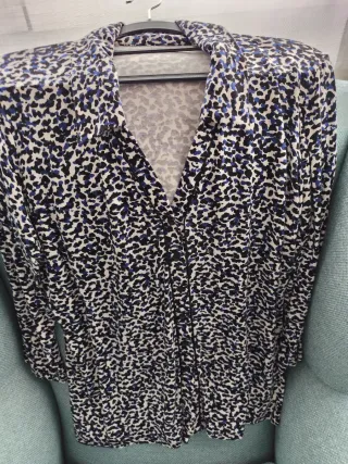 Elegante blusa de Zara con un llamativo estampado animal print.Ña telas es con mucha caída, como si fuera seda. - Diseño de manga larga. - Cuello camisero. - Cierre de botones.