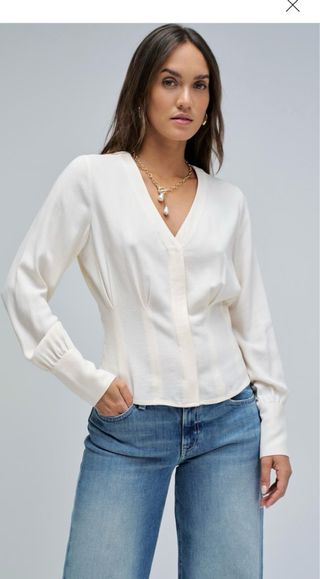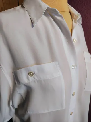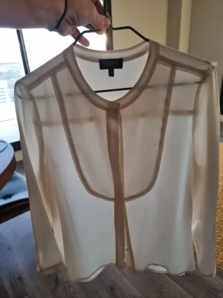 Blusa blanca/transparente. Queda muy bien. Elegante. 90% seda y 10% elastano