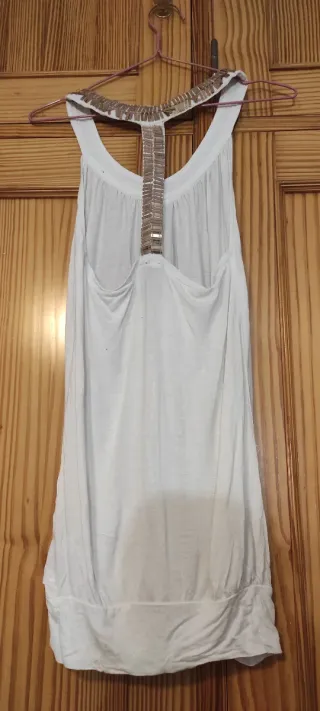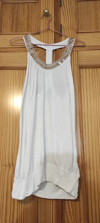 Blusa fina con tirantes y detalle de pedrería en el cuello. - Diseño elegante y ligero. - Ideal para combinar con diferentes estilos. Tiene un pequeño agujerito en la parte frontal