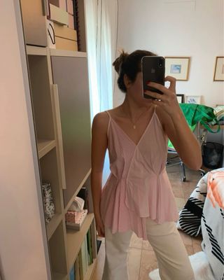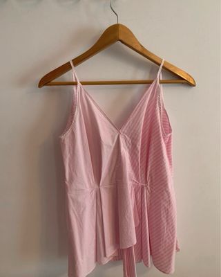 Blusa Mango rosa y blanca