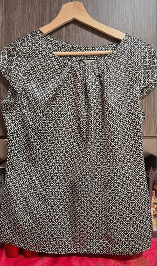 Elegante blusa de raso con un estampado geométrico en blanco y negro. Su diseño la hace perfecta para diversas ocasiones. - Tejido de raso suave. - Estampado geométrico. - Corte moderno.