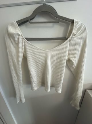 Bonita blusa de H&M con manga larga abullonada. - Tejido de canalé. - Escote cuadrado. - Puños con volante.
