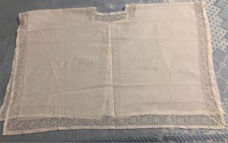 Preciosa blusa blanca con detalles de puntilla de ganchillo,ideal para un look retro. - Diseño único de los años 20. - Adornos de puntilla en cuello y bajos. - Tejido ligero y vaporoso. -ojales para pasar cinta si qz quiere ajustar a la cintura - ancho 75 cmt. largo 52cmt