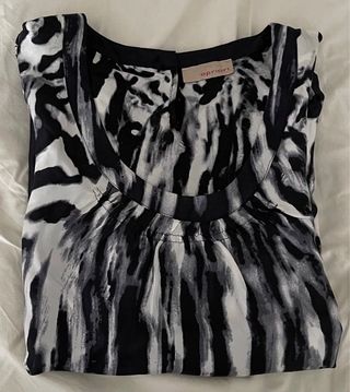Blusa de mujer con un llamativo estampado. - Diseño con estampado animal print en blanco y negro. - Cuello redondo. - Tejido ligero y fluido.