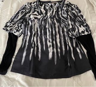 Blusa Mango larga Estampada Negra y Blanca