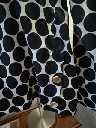 Blusa elegante con estampado de lunares. Sirve para T M y L - Diseño de manga larga. - Detalle de botones dorados en los laterales inferiores.