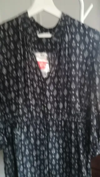 Blusa de Mango con un bonito estampado, nueva, T-M. - Diseño con cuello en V y cordones. - Manga larga. - Cintura elástica.