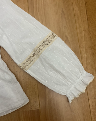 Blusa blanca con puntilla beige Talla L