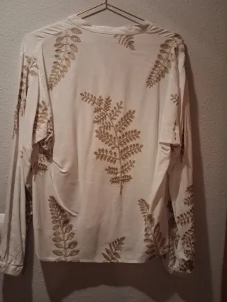 Blusa blanca con un bonito detalle en la parte delantera. Es una prenda elegante y versátil. Marca talla 48 pero es el tallaje es más pequeño talla 44 - Detalle frontal con botones. - Manga larga.
