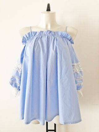 Blusa Escote Barco Mangas Encaje. Talla: M/L. Nuevo con Etiqueta. El modelo es muy ancho y vale par 2XL también Hacemos lotes. Realizamos Envíos.