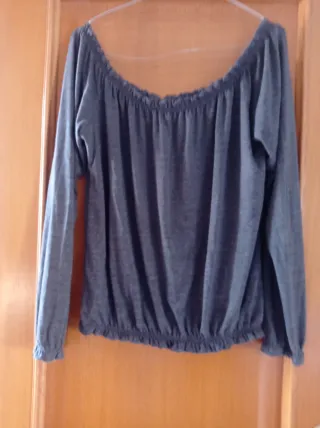 Blusa gris manga larga escotada