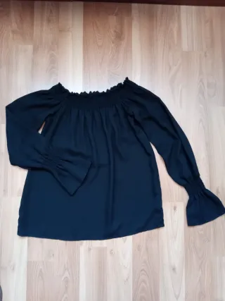 Blusa negra semitransparente con escote barco (deja los hombros al descubierto) talla única. Sin estrenar.