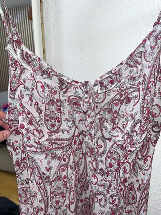 Blusa larga con un bonito estampado. - Diseño paisley. - Tirantes finos. - Escote en V con detalle de lazada.
