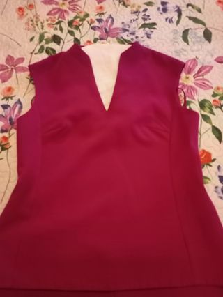 Blusa Ted Baker en color buganvilla muy favorecedor. Escote pico y cuello subido.Muy elegante. Talla 2, aproximadamente talla 38/40.