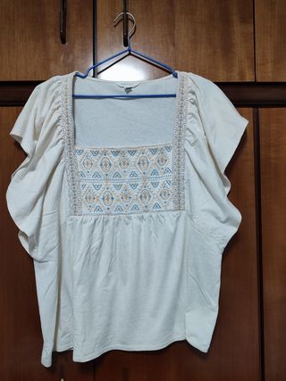 Bonita blusa a estrenar. Con bordado. Escote original. Fresquita. 100% algodón.