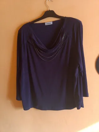 Hermosa blusa de manga larga con un diseño llamativo en el cuello. Su tejido brillante añade un toque de sofisticación. - Tejido acanalado. - Escote con detalle cruzado. - Acabado con hilos brillantes. - Pone XL pero viene pequeña ajustada perfecta para M.