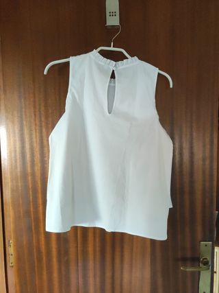 Blusa de Bershka blanca con flores, tiene un top por debajo. Usada un par de veces.
