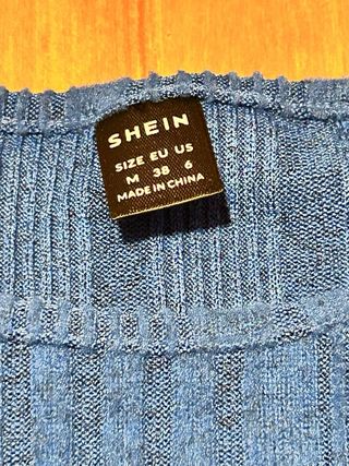 Preciosa blusa de manga larga color azul, de la marca SHEIN. Es de talla M. - Tiene un diseño de hombros descubiertos. - Presenta un tejido de canalé. - Está en buen estado.