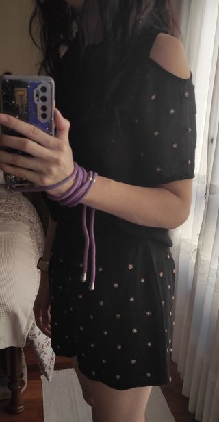 Blusa en perfecto estado muy muy original. Es de color negro con un bonito estampado. Tiene los hombros al descubierto.✴️ Medidas aprox: sisa a sisa 53 cm y largo 57 cm #blusa #blusamujer #blusafemme #blusabershka #bershkafemme #bershkacollection #bershka . VISITA MI PERFIL TENGO MÁS MODA. HAGO ENVÍOS