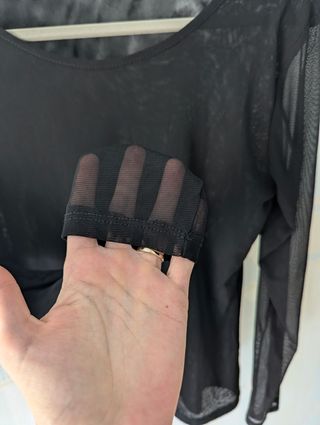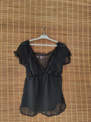 Blusa negra con mangas transparentes con circulos. Sin estrenar
