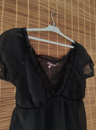 Tirantes regulables Tela como de gasa, fresquita No transparenta Tira en la espalda que queda muy bien Poco uso