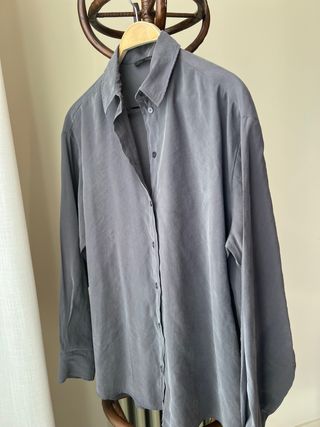 Blusa de corte ancho de Zara. Su tejido tiene una caída muy bonita y es ideal para cualquier ocasión. - Cuello camisero. - Cierre de botones. - Manga larga. - talla grande