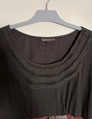 Blusa parte negra de punto y bajo de tela de flores , cremallera lateral, manga 3/4 con goma en el puño. Talla 42 pequeña, como una 40 Marca Antea, para El Corte Inglés.