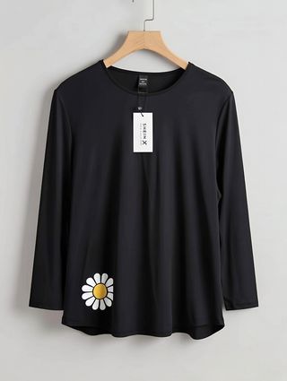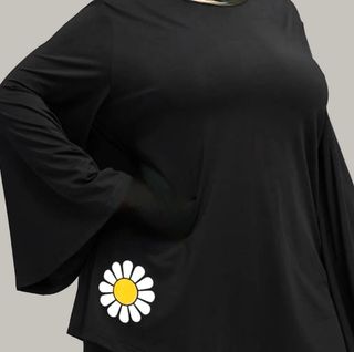 Camiseta de mujer con manga tipo murciélago Color negro con un estampado de una margarita Talla 0XL (44) Marca SHEIN Está nueva con la etiqueta puesta Tela tipo lycra Medidas del Producto Hombro:44.5 cm, Largo:72.5 cm, Largo de la manga:55.8 cm, Pecho:112 cm, Contorno cintura:116 cm, puño:77.7 cm