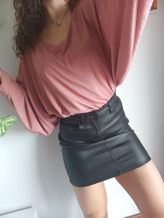 Blusa de tela fina con caída bonita y con manga tipo murciélago. Viene con una camiseta de tirantes por dentro del mismo color muy elástica, por lo tanto puede dar alguna talla más.