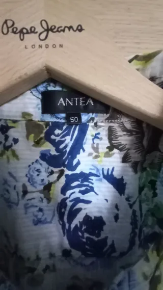Bonita blusa de la marca Antea con un estampado floral muy llamativo. - Diseño con cuello - Manga corta - Estampado de flores en tonos azules y verdes