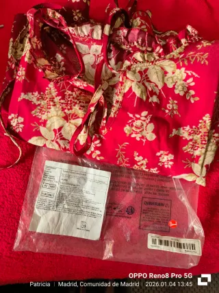 Blusa de manga larga con un bonito estampado floral. Es una prenda nueva, ideal para añadir un toque de color a tu armario. No hago envíos se r coge linea 9 metro Artilleros - Diseño es rojo burdeos con flores beige muy bonita, cuello alto. - Mangas largas abullonadas. - Tejido ligero y fluido.