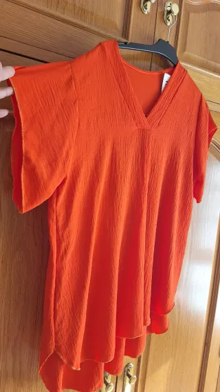 Marca C&A. Talla 46. Blusa de corte acampanado con mangas de tres cuartos. El diseño presenta un tejido plisado que le da una textura única. - Tejido plisado. - Mangas 3/4. - Corte acampanado. - Forro interior Ancho 40 Largo 73 Axila 60