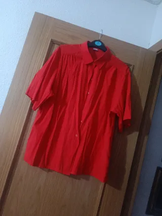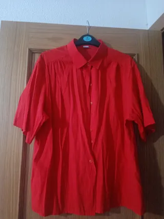 Blusa de manga corta en color rojo.largo hombros 45 largo ,total 64 - Cuello camisero. - Cierre de botones. - Diseño con pinzas.parede 46 pero sería una XL