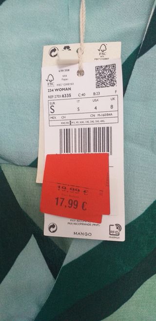Queda precioso puesto y hace un pecho espectacular. Talla S aunque yo diría que vale hasta para una L, ya que es amplio. Nuevo sin etiqueta. NO NEGOCIABLE.