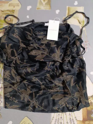 Elegante blusa de la marca Kookai con un bonito estampado. - Diseño con tirantes finos. - Tejido satinado con estampado floral. - Detalle de volantes en el escote.