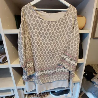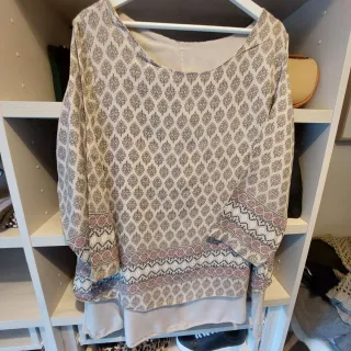 Blusa con un bonito estampado en tonos beige y rosa. Presenta un diseño con manga larga y un bajo con volantes. - Estampado de motivos florales. - Manga larga. - Bajo con detalle.