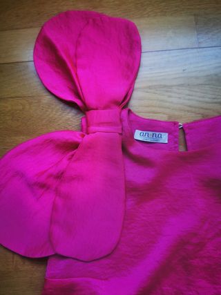 Top fucsia en tejido muy ligero, de la marca Cayro. Volante al hombro muy favorecedor.