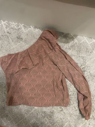 Blusa asimétrica con un estampado elegante. - Diseño de un solo hombro. - Detalle de volantes. - Manga larga.