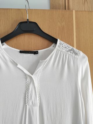 Blusa blanca Only talla 36, da talla. Fresquita y cómoda. Adornos de encaje en los hombros.Como nueva, apenas usada.