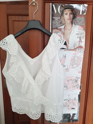 Blusa blanca con encajes de Zara Trafaluc. Talla S aunque yo suelo tener una M y me queda bien, un poco justa pero bien. Con botones en la espalda.