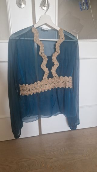 Blusa azul de encaje