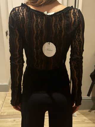 Vendo camisa de manga larga con detalles de encaje y cremallera frontal. Talla M. Marca Yera.