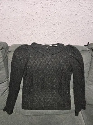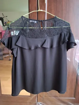 Elegante blusa de Zara con detalle de encaje. - Diseño con mangas cortas. - Cremallera en la espalda. - Tejido principal negro y tela muy agradable.